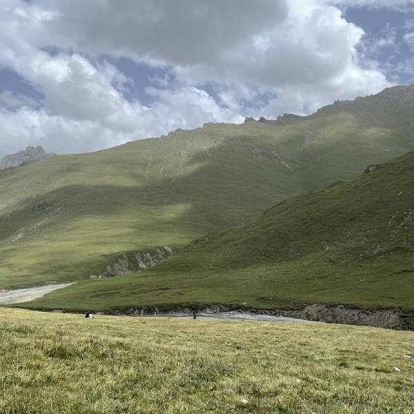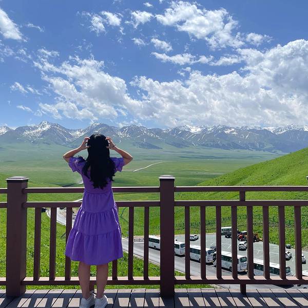 我们乘坐大巴车在最后一战游牧人家下车后,就看到满眼的绿色,远处有几个白色的蒙古包散落在这片绿色里。到了游牧人家可以选择买观光车票(60元/人)去雪莲谷看看。那里能近距离看到雪山。就是当时天气有些阴,我们一下观光车大风差点儿把我的帽子吹飞。雪莲谷 展开