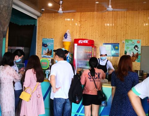 上海海昌海洋公园,因为过山车没有开,所以这个火山漂流可以说是很热门的一个项目了,当然可以买快速券,但是价格贵!还是选择了排队,顺便聊天解闷,一定要穿凉鞋和长一点的雨披,否则屁股这里会湿掉,的确好玩,值得排队2次