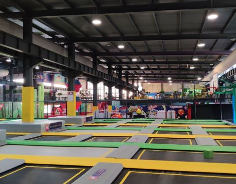 带孩子来这里玩蹦床,亲子票是128元,限制是4岁以上小朋友可以进入玩~另外需要单独购买蹦床袜10元一双~ 场地挺大,设施也完善,卫生保持的不错~还有小朋友玩的淘气堡~里面工作人员还挺多,有的工作人员真心是挺辛苦的~总体我觉得还不错,可以再去~