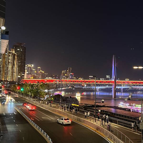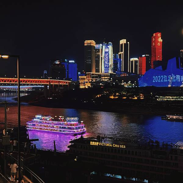我来重庆最喜欢的一个地方就是这个商场,商场很大,品牌很多,逛街的好选择,商场的一楼有很多精选的重庆特色小吃、美食,试了好多都不踩雷,都很好吃,红油抄手直接一秒爱了,干净又舒适。 商场门口就是嘉陵江,又是两江交汇处,黄昏在商场露台上看看两江交汇,吹吹风很舒服。夜晚可以看到江对岸的大剧院,对岸灯火阑珊,江上还有缓缓驶过的邮轮,美轮美奂。