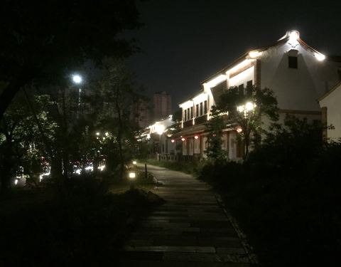 饭后散步偶然经过这里,走进去看发现很多房子还没有开门营业。估计这个是一个还完工的景点,没什么人事,冷清清的,但晚上沿河边走可以欣赏到不错的风景。
