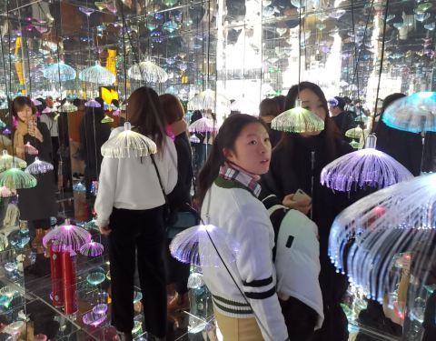 嗯,如果热衷于拍照打卡啥的,可以去去,要不然性价比真的不高。地段挺好,在南京路步行街上,展览馆被分为一个个几平米的小房间,里面装饰着一些灯光镜子啥的,视觉上有一种不断重复的色彩和光带来的奇特感觉。某个房间都时间较紧,你可以随便按按,进去基本就是一条道,一个门进,一个门出。随便拍拍照的话,半小时到一小时就够了。
