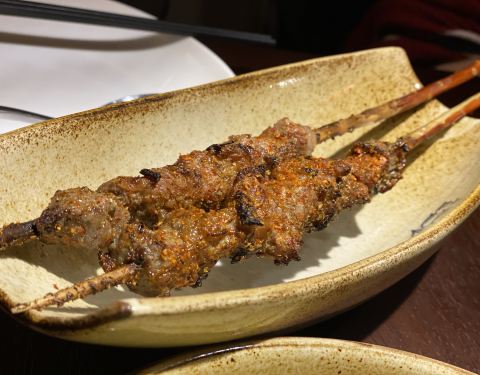 长泰广场的美食餐厅也是日新月异,听说新开了新疆餐厅,必定是要来拔草的。 【环境】大月氏的名字听来就是很有西域风情的,装修风格更是感觉来到了美丽的大新疆,开放式厨房可以看到人工串羊肉串的过程。 【口味】 「小马椒麻鸡」大盘鸡吃了很多次了,换个椒麻味的,鸡肉质量上乘,有嚼劲,所以特别香。 「红柳羊肉串」中国西部特色,用红柳串的羊肉,可以把肉香和树枝的清香完美结合在一起,非常正宗。