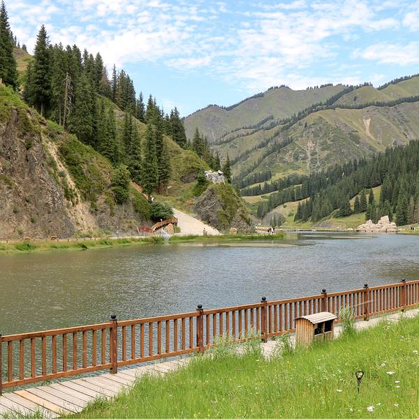 天山大峡谷主要景区有天山坝休闲区、照壁山度假游乐区、加斯达坂观光区、天鹅湖自然风景区、牛牦湖林海松涛观光区、哈萨克民族风情园区、高山草原生态区、雪山冰川观光区,二湖、三瀑、四溪、十八谷相映争辉,尤以“奇松、怪石、云海”受到游客青睐,留下“五岳归来不看山,大峡谷归来常忆谷”、“百里黄金旅游走廊,休闲度假户外天堂”的赞誉,天山大峡谷囊括了除沙漠以外的新疆所有自然景观,是人类农耕文明之前游牧文化的活博物馆,具有极高的旅游欣赏、科学考察和历史文化价值。
