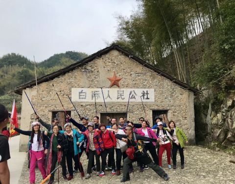 安徽黄山休宁白际岭,是徽开古道上的最高点,据说,这里是安徽最晚通水电的地方。也许,正因为这一点,这里反而更具有吸引力。有很多人户外俱乐部双休日的活动便是来这里徒步。 行走徽开古道白际段,领略古道原生态美景,参观上世纪六七十年代的人民公社,富有年代感的标语保存得不错。看见一群人在那里摆出有年代感的POSE留影,玩得很嗨…… 安闲的田园风光、原生态绿色食品,当然也是路程中最富有吸引力的内容。在没有路的山里翻山越岭近二十公里,晚上来一桌最新鲜的农家菜,“活杀”的青菜和豆角,现磨的豆腐,陈年的腊味咸肉,刚刚“跳”进汤锅的散养鸡……没有大厨,也是一桌令人馋涎欲滴的丰美农家宴。