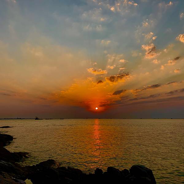 作为一处免费的景点,有山有海,有沙滩有礁石,非常值得一来,据说十分适合看日落。非要说缺点,可能就是沙滩一挖都是那种黑色的污泥,应该跟紧挨着码头有关,货船特别多。应该是因为下雨风大原因,船都停泊在港...