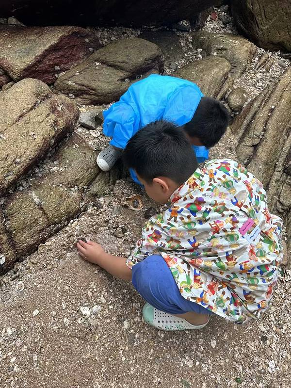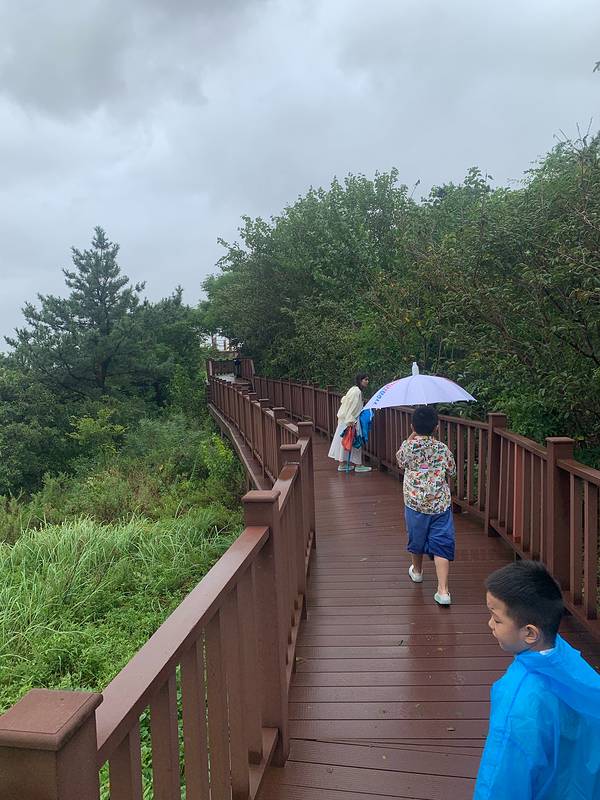 作为一处免费的景点,有山有海,有沙滩有礁石,非常值得一来,据说十分适合看日落。非要说缺点,可能就是沙滩一挖都是那种黑色的污泥,应该跟紧挨着码头有关,货船特别多。应该是因为下雨风大原因,船都停泊在港口。俩娃娃最喜欢的就是捡贝壳了,捡了很久都不愿意走。可能因为下雨的原因,整个海看着都是土黄色。小山上的沿海栈道值得漫步。