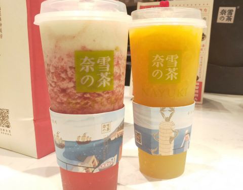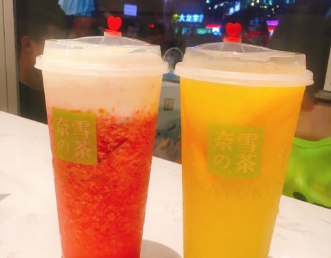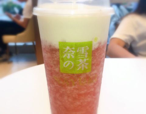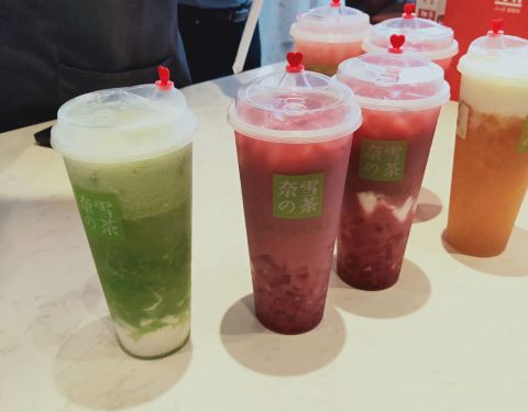 奈雪的茶(浦西万达店) 泉州的第一家奈雪,开在了泉州浦西万达一楼一号门,已经开业一阵子了,几乎还是天天排队,不过点单速度挺快的,但是等领饮料估计要10来分钟,也蛮快的。 店面空间挺大,但门里门外都是人,座位位置其实还好,几乎都能找到座。 饮品: 霸气芝士草莓 可以两种做法,选了沙冰做法,正常甜度,奶盖有厚度,咸奶盖,果肉多,口味整体不腻。 霸气橙子 也是可以两种做法,这款选了果茶做法,橙子果肉多,但喝完最后都剩在杯底了,味道也是清爽不腻。 霸气榴莲 选了最贵,不选最对♀️,面包有嚼劲,但味道觉得一般。