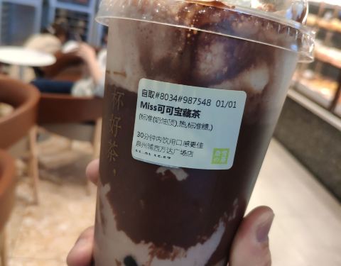 miss可可宝藏茶混合核桃碎,半颗费列罗,榛子奶,旺仔果冻,排除略甜以外很是好喝,满足巧克力粉的欲望