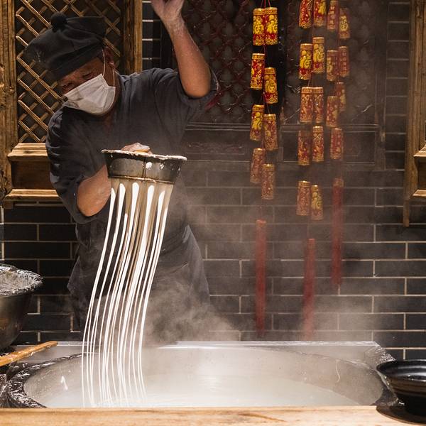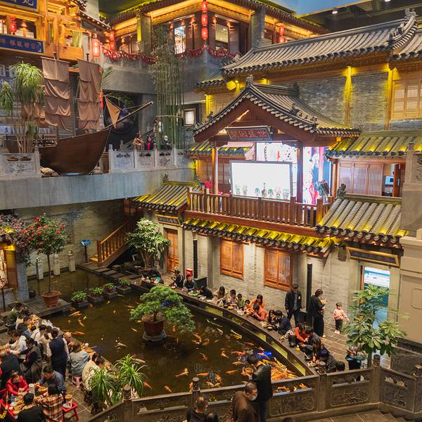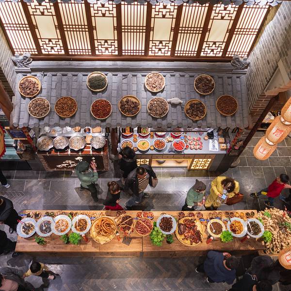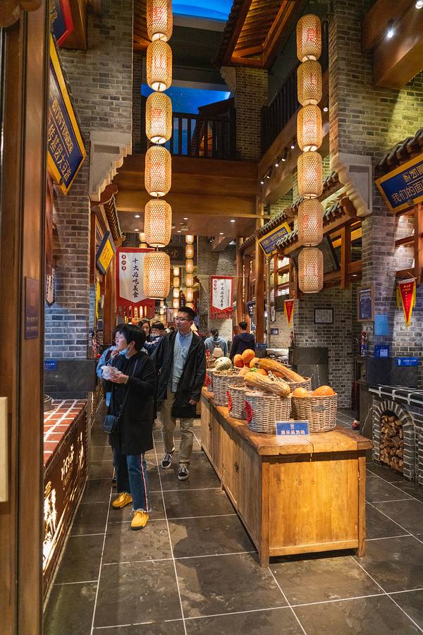 博物馆以故宫最为知名,能吃的博物馆,你有去过吗?在唐山,有一家能吃的博物馆,它汇集了众多的唐山地道美食,它的名字叫唐山宴饮食文化博物馆。总有一些味道最能勾动人的记忆,能在一瞬间撬动人内心最深处的柔软,这感动有一些是乡愁,有一些叫家乡味道。时间如流水,洗尽铅华,有些场景会变淡,有些记忆会模糊,但记忆中的味道会一直伴随着我们。“让世界爱上唐山味道”,唐山宴饮食文化博物馆将场景重现,将记忆复原,将依稀存在于老时光里的亭台楼榭、小桥流水、茶坊酒肆、食铺作坊、小镇街巷活生生拉在了现代人的眼前,让回忆里的芳华岁月重现。唐山宴饮食博物馆集特色餐饮、民俗传承、文化体验、休闲娱乐于一体,想要吃唐山的特色小吃,不用东奔西走,来这里就妥妥的齐活了。一进门就可以开启逛吃逛吃的节奏了,当然这里也并不缺少各式各样的老物件,古色古香里又带着人间的烟火气,这些看似消失在我们生活中的物件,其实离我们并不遥远。唐山饮食文化博物馆由三街两巷一条河连通,一条概念滦河贯穿其中,两条小巷穿插连通主街,乡愁作坊街、小山风情街、京东美食街、便宜街、小山大世界、姥姥家商铺、梨园盛世……街巷两旁店铺林立,街上人来人往,饭菜飘香。随意的买几样中意的唐山的特色小吃吧,坐在错落有致的方桌旁,方桌旁“滦河”水缓缓流淌,金色的锦鲤游得欢畅。方桌对面,“梨园盛世”的舞台上吱吱呀呀的唱起了评剧,一边吃着美食、一边看着演出,简直就是美味加倍啊。如果说唐山宴的一楼主打平民消费,玩的是餐饮大排档,那位于二层、三层的就应该算得上是包厢了,这里主要采用传统民居小院样式,以本地民俗物品做装饰,很是吸引眼球,即便只是拍个照、打个卡,也是极为赏心悦目的事情。喝得微醺,更中意美味,不想走了,就住这里好了。与饮食文化博物馆同款的文旅酒店,充满了因年代而带来的艺术感,蕴含着时光沉淀的内涵与美好。