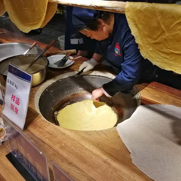 唐山宴饮食文化博物馆位于于唐山市路南区学院南路,建筑面积3万平方米。这里集唐山特色美食与文化旅游于一体,是一个通过文化展示、互动体验等方式打造的河北省内首家一站式特色美食基地,这座能吃、能看、能玩,守护并传承“唐山味道”的饮食文化博物馆被称为能“吃”的博物馆。 唐山宴毗邻唐山大剧院和南湖公园,可乘坐公交79路、游5、游6等线路到达。如果时间充裕,可以先行游览南湖公园,等快到饭点儿了从6号门出口出来,走五六钟即可到达。我当天就是这个路线,觉得还是挺合适的。我去的时候人挺多的,门口还有不少坐大巴车来的团正在往里进。唐山宴的大堂既有流水锦鲤,也有梨园戏台,一层基本都是些小吃类的,有全国到处都有的那种,也有当地的特色美食。二三层会有一些看起来装修考究吃正餐的馆子。不同于平时看到的那种美食小吃一条街,来到这最先吸引你的不是美食,而是里面身着古装的工作人员和富有地方特色的装饰构造风格,眼睛会被不自觉的吸引。除了美食的味道,你也会嗅到些许文化气息。大家到了这儿一般都是楼上楼下先转一圈,这看看,那瞅瞅,拍拍照片,然后在选自己想吃的爱吃的,可以说是先饱眼福再饱口福。除了吃了一些串啊什么的我在这里吃了唐山的一种特色面食小吃——饹馇。它是用豆面做成饼形,切成块,熬菜吃、炸着吃或炒菜吃,我吃了饹馇汤,炸饹馇,人多的话还有套餐可以选。味道呢算不上惊艳,但也挺好吃的,炸饹馇的口感不错,蘸点甜酸的番茄酱别有一番风味。 关于这道美食还流传着一个很有趣的故事。据说当清王朝在遵化建东陵以后,守陵人为讨得皇家的欢心,就把这一特产送进了皇宫。当时的慈禧太后吃饭有个习惯,端上来的菜最多只夹两口就撤下。有一次,御膳房端上了醋熘饹馇,她一看没有吃过,问了声:“这是什么菜呀?”太监赶忙回答:“还没起名字呢,请老佛爷赐个名吧。”慈禧太后一边听一边吃了两口,太监就忙着往下撤。谁知,慈禧太后还没有吃够,就说了句“搁着”吧。太监以为这是太后赐的菜名,马上传下去:“老佛爷赐此菜名为‘ 饹馇’。”二者谐音,从此以后,这种叫法便在民间流传至今,饹馇的身价也大大提高。唐山宴里的许多美食背后都承载着这样一些故事,一些趣谈。如果到唐山,可以到这转转,边看,边吃,边玩,挺不错的。