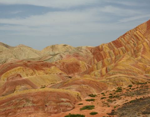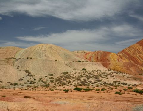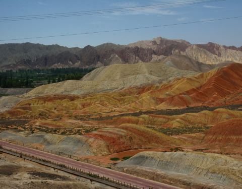 张掖的七彩丹霞的这一段特别的漂亮啊,感觉像躺着的睡美人一样还是挺有意思的,祁连山脉真的是很长的啊这里七彩丹霞也是很长的一段风景呢。