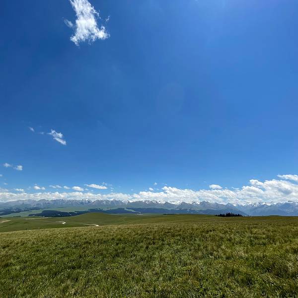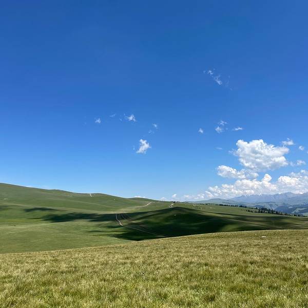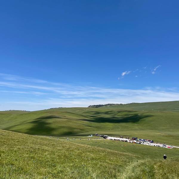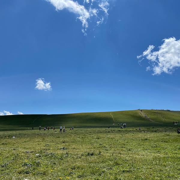 喀拉峻大草原和阔克苏大峡谷是两个联通的景区,通过索道联通。在去喀拉峻景区的途中有一个支路去阔克苏大峡谷,售票小姐姐告诉我们的游览顺序是先玩草原这边的几个景点,然后做索道游玩峡谷那边的景点,最后坐船出景区。当我们出去的时候发现和进去的地方完全不是一个地方,问了工作人员才知道本来就是两个地方,需要在游客中心坐交通车才能去另外一个景区入口的停车场开车(因此我们在景区等了大半个小时的接驳车,加上乘车的时间估计一共浪费了一个多小时)。自驾的朋友推荐的游览方式是坐两次索道,从同一个售票厅进出景区就不会迷路了。 从特克斯八卦城出发到喀拉峻大草原就30公里不到的路程。景区内也是不允许自驾的,必须乘坐景区内的交通车。游览所有景点,加上索道和船票好像是275元/人,玩了喀纳斯和赛里木湖感觉这个景区性价比稍微有点低。如果有时间去琼库什台或者库尔德宁住一晚应该体验会比大草原更好。红圈是分路的位置,两个景区的游客中心相距十几公里,这个设计真的很坑我们游玩的时候交通车停靠的地方有石泉、鲜花台、猎鹰台。简单地说这个景区的景色就是草原、草原和草原,每个地方都差不多,全程windows桌面既视感,看多了城市的喧嚣,来草原洗洗眼睛净化一下心灵也是很不错的选择。网上有攻略说这个地方有很多野生动物,如土拨鼠、狐狸之类的,我们就只看到几只土拨鼠,还没来得及拍照就钻进洞了。司机师傅说现在景区游玩的人太多了,动物都被迫迁徙到草原的深处去了,已经看不到了。草原中还有一些山谷远处还能看见雪山有云有光影看着更漂亮windows桌面此处应有系统开机音乐来一颗?