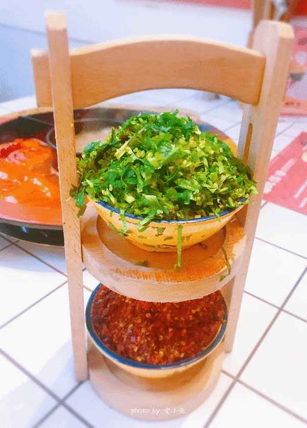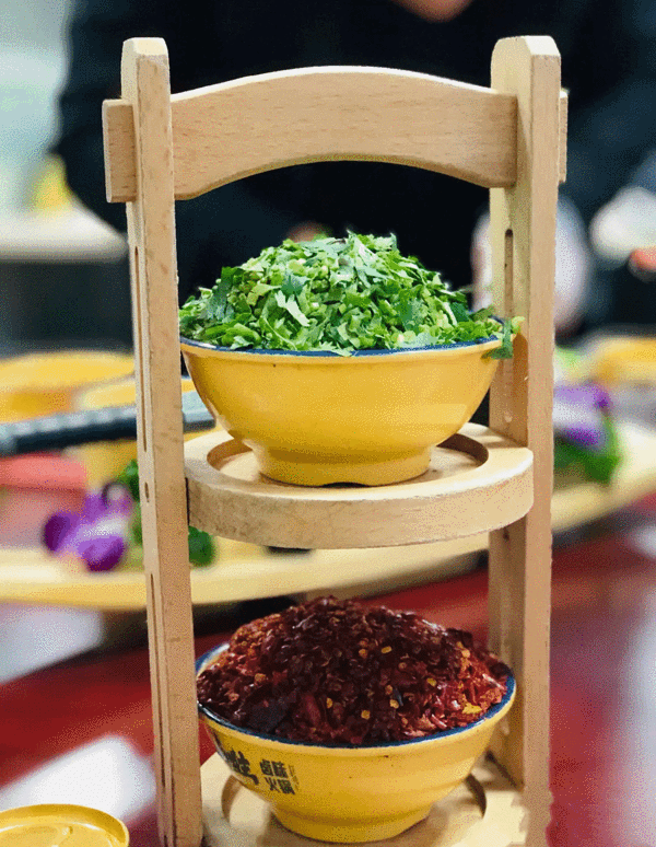 菊花残:真的一定要慎点,自认为很能吃辣的闺蜜一个都没吃完就被辣的不行。这道菜是辣椒和肉剁在一起成的丸子形状,造型看起来可没这么辣,但是这个辣椒真的就是超辣超辣的那种辣。双味牛肉,就是有两种味道的牛肉,一碗裹满辣椒面的牛肉,一碗裹满香菜的牛肉,大红大绿的,由于本人很喜欢吃香菜,所以这道菜简直就是深得我心。香菜牛肉涮在红锅里很香,不用蘸油碟都很美味。麻辣味的,吃起来够味,辣的过瘾,牛肉都很嫩,而且都是大片大片的,吃起来十分的过瘾。强力推荐!
