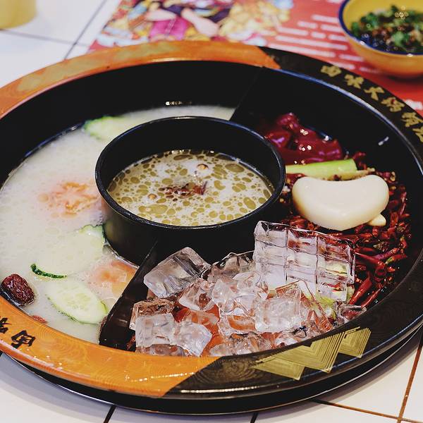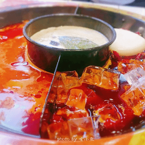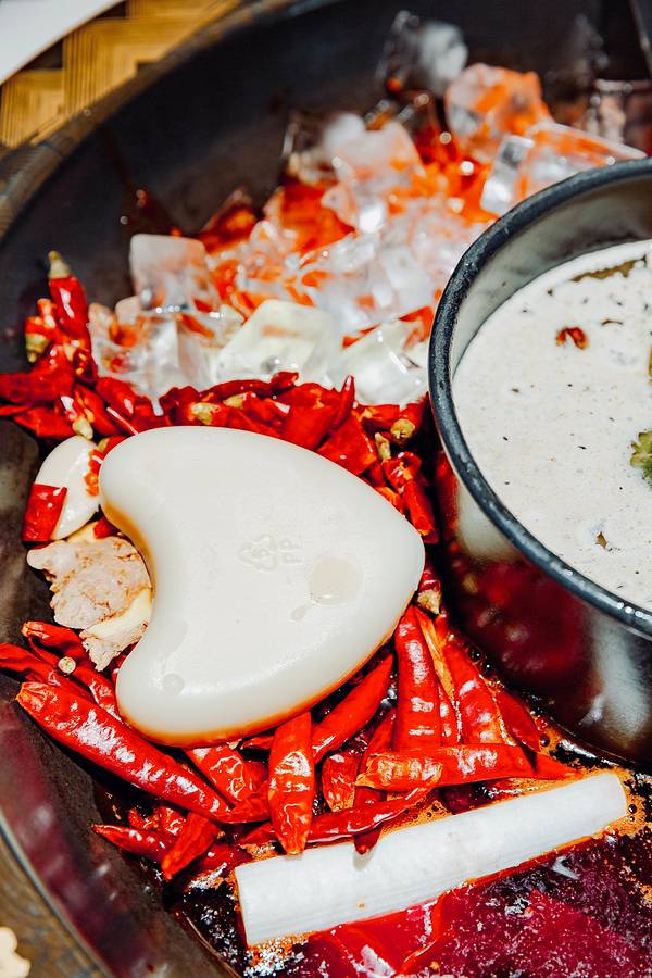 🌶️他们家最大的特色就是冰卤火锅,也就是把火锅底料和冰块放在一起。据说加冰块能保持锅底牛油的味道,解腻降燥。等冰块在锅里慢慢地融化,低温慢煮,使底料的味道更好地散发出来。