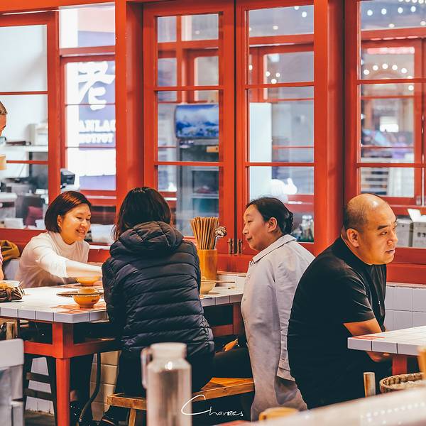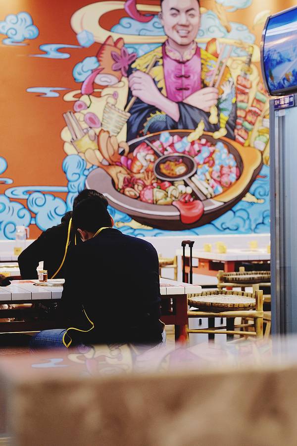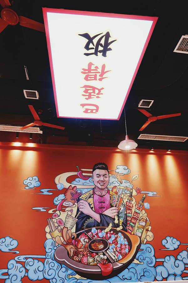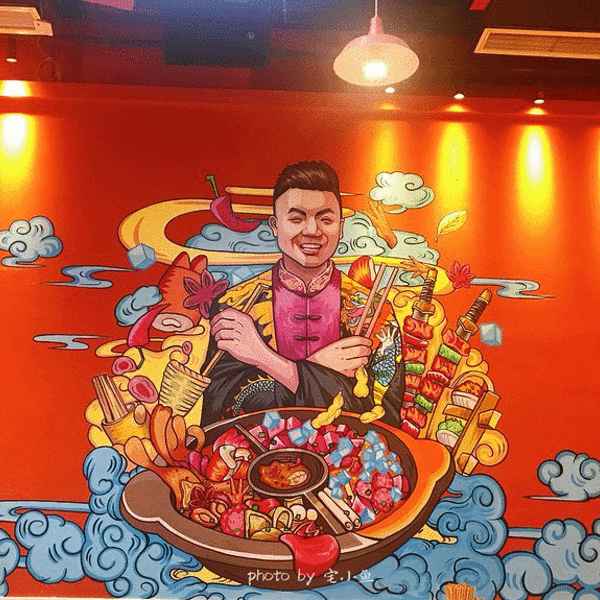 🏮装修用的是大片的红色,看上去就很中国风。用一整面墙做了大面积的绘画,很符合火锅店热烈的风格。