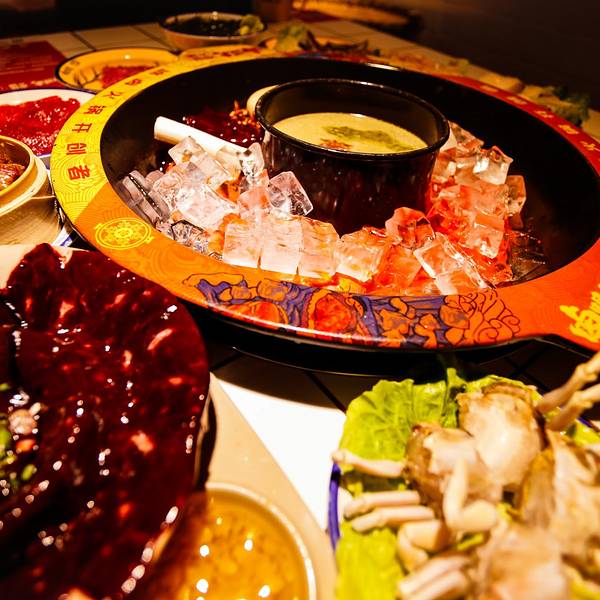 交通:地铁2/3号线春熙路站均可直达,停车的话可以停时代华章广场负二楼。成都 的美食到底有多少种样式,在此之前我还真的没什么概念,直到这一次的卤味火锅出现,而且是冰卤!在火锅里面放冰煮火锅,是不是很神奇?为什么加冰,服务员说它家锅底是由牛油低温炒制,加入适合低温慢煮的血旺,豆制品等菜品。所以由冰块替代传统的汤,作用是中和锅底温度,让锅底油脂缓慢融化,将牛油的营养,油脂香味最大的保留。锅底是真香,这个锅底是他家首创!吃火锅还能长见识,真的是有趣,不得不咱们美食文化之深厚功底!