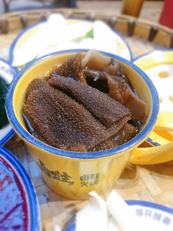 总觉得是商家宣传的噱头,怎么也得看看到底是不是忽悠,于是我忐忑的点了这道菜,真的辣哭了。签字的时候不以为然得的样子,最后吃一个辣得我胃疼,后面想起来我的行为觉得好可笑。噱头️: 成都冰卤火锅开创着者