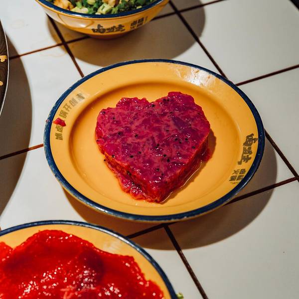 🍤【火龙果虾滑】还是第一次吃。像是一颗大大的红心,没想到火龙果和虾滑还能搭配到一块。因为有了火龙果的加持,涮出来的虾滑更嫩一些,还带着水果的清甜。很值得一试。