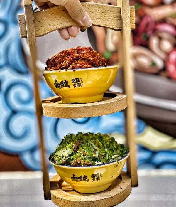 双味牛肉:两种颜色,两种口味,麻辣牛肉带着辣椒的刺激与锅底融合,辣爽鲜嫩。🌈卤盟主卤味火锅