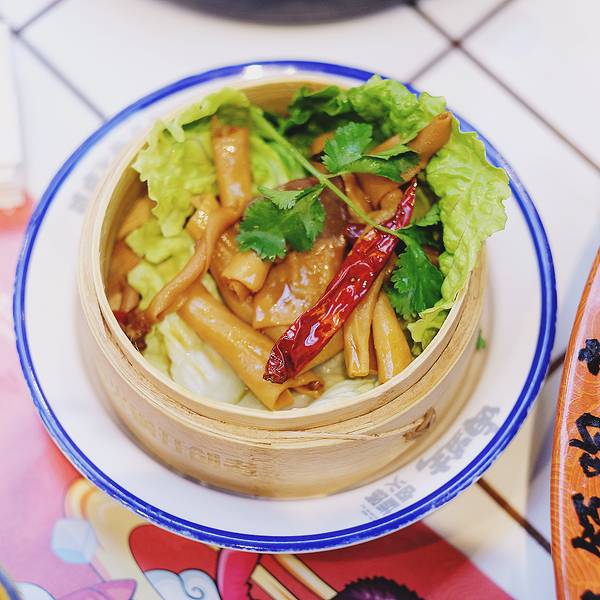 肝胆相照也是一道比较有特色的菜,摆盘造型也很独特,超嫩超薄的肝片,在滚烫的红锅里烫几下,配上秘制的咸蛋黄酱,这是你绝对没尝过的舌尖美味。卤味锅烫素菜很好吃的,连一向挑剔的闺蜜都赞不绝口。