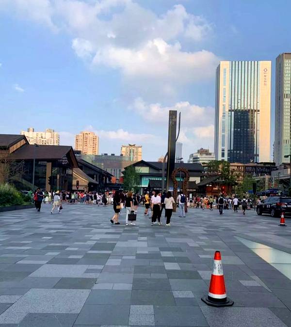 肝胆相照也是一道比较有特色的菜,摆盘造型也很独特,超嫩超薄的肝片,在滚烫的红锅里烫几下,配上秘制的咸蛋黄酱,这是你绝对没尝过的舌尖美味。上了2019大众点评必逛榜商场的太古里如今已是成都的标志性商场之一,设计上保留传统的建筑元素让它具有独特的魅力,同时也藏匿了不少适合拍照的打卡地。吃了饭就来到太古里了,这里高楼林立人山人海。