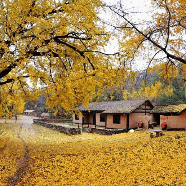 贵州妥乐村 近年来妥乐村一直占据着赏秋的热门地点,被称为“世界古银杏之乡”。上千株银杏村和古村镇相结合构成了一副古画。每年到了深秋这里的银杏树都会变成金黄色,历史的古建筑、高大的银杏树在妥乐村缥缈的雾气中显得朦胧。 走在古村镇之中,看着小溪流动,四方八方的小径和屋檐交织在一起,这一切给人一种前所未有的悠闲的感觉。 湖北随州 随州有着我国保存最完整的古银杏树村落,道路两旁的千年银杏树一路向前延伸,一眼望去就好像是一张金黄色地毯。随着阳光的照射从树叶中透出,在地上留下斑斑点点的光影让人眼前一亮,深秋时期银杏树叶飘落在屋顶上令这个古村镇蒙上了一层面纱。