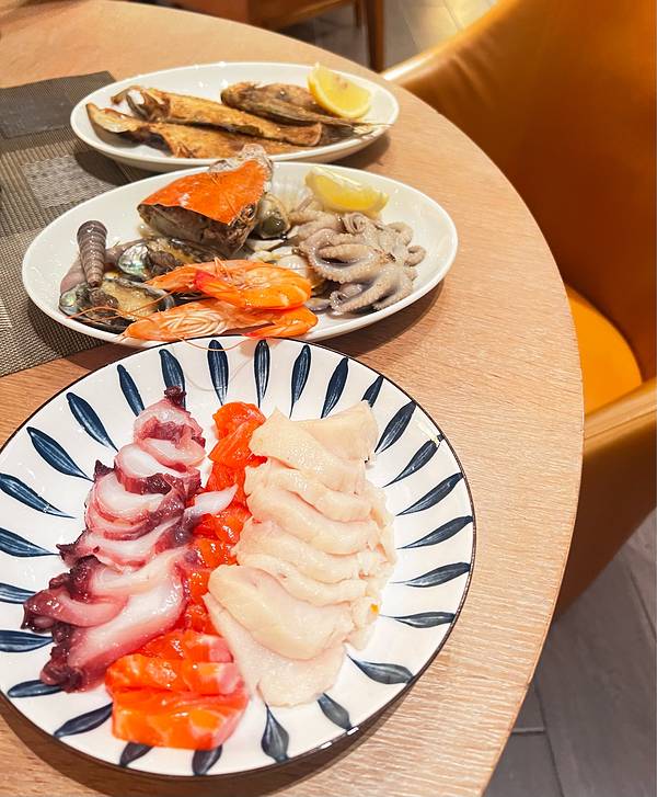 晚餐就在自助餐厅来,海鲜日料各类烧烤应有尽有,吃得好撑刺身都是现切的,吃吃吃吃吃特别大的鱿鱼🦑