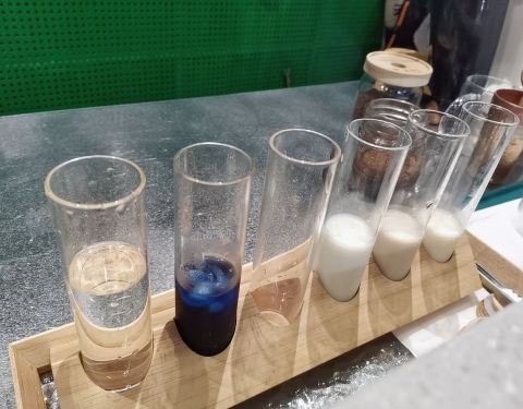 三刷Reload——让一个不爱喝咖啡的人爱上一家店的奇妙之旅~~~~~~~ 一年的沉淀,让Reload更受“迷妹们”的追捧,原来小小的店铺超负荷工作了一年后,于2020年的夏天在原址不远处扩大了两倍店面,炎热的夏天,绿绿的Reload让人感觉一阵清新和眼前一亮! 在特殊的520的日子,约了闺蜜小坐,点了一众好评的“颜王”——憾夏(52),坐在吧台的位子全程“欣赏”制作过程,一边享受着用蜜桃乌龙茶泡埃塞俄比亚的“瑰夏冷萃”飘出的阵阵香味,一边看着陆续加入的菠萝汁原液和菠萝果肉风味的泡沫奶盖,接下来的“妙手回春”,是取半颗无花果干,手工研磨出粉色的果芯,再筛上一办的奶盖,最后沿着杯口放上另半颗无花果干,这是一种怎样的“犹抱琵琶半遮面”的娇羞~~~~~~ 进入6月,眨眼就是闺蜜的生日,又一次约在了这家“神仙小店”。才半个多月的功夫,菜单竟然就有“颠覆性”的更新,不爱咖啡星人再一次拜倒在了3款新品的“石榴裙”下,Emmmm,无法自拔的那种…… 咖啡实验室,起初因为喜欢蝶豆花的蓝紫色而对它“动了情”,而当知道制作的亮点是“试管”的创意后,更笃定的确定了这杯“Mr. Right”! 看着老板搅拌了很久的Coffee 400后,正式开始“试管试验”喽~~~~~~~倒入冰淇淋口感的水牛奶和谷物纤维的燕麦牛奶后,加入自制的蝶豆花冰块,再加入提纯的牛乳制品——冰博克炼奶,中间层是冷泡过的蝶豆花汁,最后用浓稠的Coffee 400做顶,完成! 这道咖啡口感层次很丰富,入口微酸的浓咖啡,中和了三合一的奶味,口感又有了极大的转折,好吧,品尝后大声宣告一下“咖啡实验”成功!