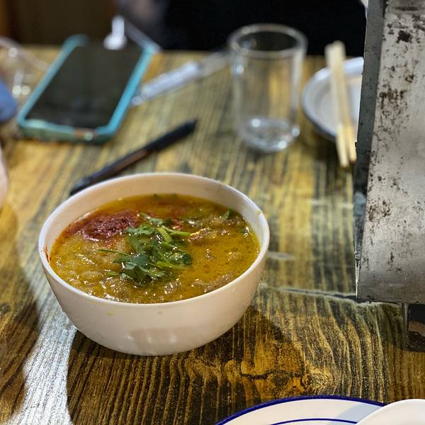 之所以来这家店,是因为看到了不知道哪儿说的,沈腾叔叔也来过的店。 也没什么特别想吃的 东北的特色,多多少少也都吃过了 就跟着沈腾叔叔觅食了。 但先生说,下回能不能找一些烧好的…… 要自己烧,挺累的。 emmm,也是有点累。东北的炒粉 长这样羊肉饺子,挺香的