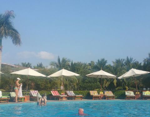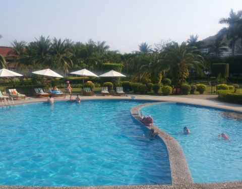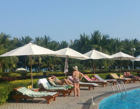 后身就是大东海海滩,海滩上有酒店专属沙滩椅,可免费使用。酒店有泳池,带花园。餐厅口味一般,酒店股东是湖北企业,所以餐厅口味好像是湖北风味。