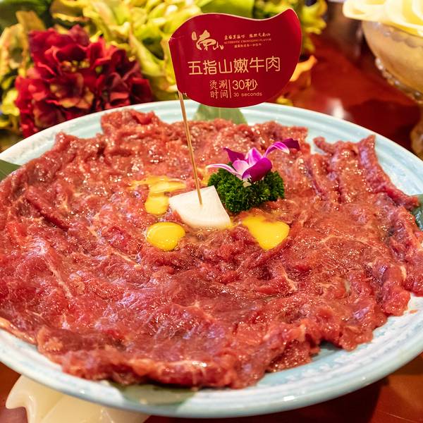 南山火锅是我们在 三亚 最后一天的行程,纯属偶然的一次探店,但是得到的结果却是印象非常深刻。其实作为北方人,连续在 三亚 连续几天的海鲜,的确是有点吃不消,毕竟南北饮食有差异,虽然也不是顿顿海鲜,但是到 三亚 来玩,主要的美食,肯定以海鲜为主。虽然味道没的说,但是六天的行程,的确有点让我跟美娟这俩北方的胃有点吃不消。前一天晚上在酒店里,美娟边敷面膜边跟我说, 三亚 有火锅吗?川味的那种,不是海鲜火锅。美娟不说不要紧,这一说,把我带的也除了火锅啥都不想吃了。到底去哪里吃,能吃到正宗一点的火锅。问朋友的时候甚至闹出了这样的笑话,我一个朋友在我问他的时候,他跟我说“大哥您没毛病吧,您去的可是 三亚 呀,您竟然问我哪有正宗的渝味火锅?”其实本来都要放弃了,但是就在临走之前决定要去 大东海 的大菠萝里,买点椰子糖椰子粉之类的,带回去给小伙伴们分享,也许就是天意,想啥来啥,本来打算反正都要回去了,中午随便吃点什么凑合一下就行了,结果就在快到 大东海 时,看到了路边的这家高挂红灯笼的南山火锅。果断下车,抓住几乎光看外观,凭直觉就知道这家火锅一定不一般,这样的装饰味道应该不会错。走进一看,木底金字四个大字“南山火锅”下面是陶渊明的一句“草菊东篱下,悠然见南山”。走进店内,我恍惚了,我这进门就穿越了?穿越到了 重庆 了?这风格,这氛围,这灯光,还没吃呢,仿佛就已经感觉到了火锅的辣味,在味蕾上绽放了。店内空间非常大,一共有两层,一层全部为开放大厅一桌一桌的那种,二楼一半是大厅一半是包间。不得不说,这家南山火锅店的包间,是真的豪华奢侈。我觉的光看图片就行了,根本不用我再去形容,它到底有多豪华。火锅的味道,那就更不用说了,绝对的正宗老 重庆 味儿。而且他家的菜品非常新鲜,通过店长介绍得知,他们为了客户的口感和味道,可以说是把前期的准备做到了近乎完美。就拿他家的南山鲜鸭肠来说,店长介绍到,如果是放超过20个小时的鸭肠,煮出来口感不佳,味道也会不那么好。所以他家的鸭肠都是,新鲜直供,色泽上一看就知道从处理到上桌,时间不会超过几个小时。火锅味道好不好,一半是食材,那另一半同样也至关重要,那就是火锅的汤底,汤底的味道,基本决定了我们吃到口中的第一感觉。他家的汤底都是直接从 重庆 运过来的秘制辣椒,搭配上秘制茶汤,正宗的老 重庆 味儿。这口感、这味道、这辣度、这口感,怎一个爽子了得。经过我跟美娟的亲自评测,实名推荐以下菜品,这道五指山嫩牛肉,千万不要错过,必点必点必点,重要的事情说三遍。根据菜品上的涮煮指导,夹住不要松筷,入锅30秒,出锅蘸上干辣椒碟,一整块全部放进嘴里,轻轻地嚼两下,牛肉的香嫩搭配上锅底的香辣,两种味道在舌尖上爆发,简直不要太爽。南山鲜鸭肠也是必点菜,新鲜的鸭肠铺在冰沙上,轻轻地夹起一根,放进翻滚的辣椒中,静静地等待15秒,出锅蘸上油碟,整根吃到嘴里,倾听鸭肠在嘴里的清脆,感受鸭肠与火锅汤底的碰撞,这就是我要的老 重庆 味儿!要不是这次去大菠萝路过这里,还真的想不到在 三亚 竟然也能够吃到这么正宗的 重庆 老火锅。算是圆了昨晚的梦,也是给这趟 三亚 之旅的美食之路画上了一个圆满的句号。