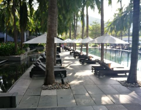 性價比一般般,前臺四張台扮理入住,人多的時間都不知道等多久,住過兩種房間,海景和園景,海景看樹頂,離海很遠,園景房分上下兩層。下午茶在觀海廊蒸桑拿一般的吃著看著椰樹頂。