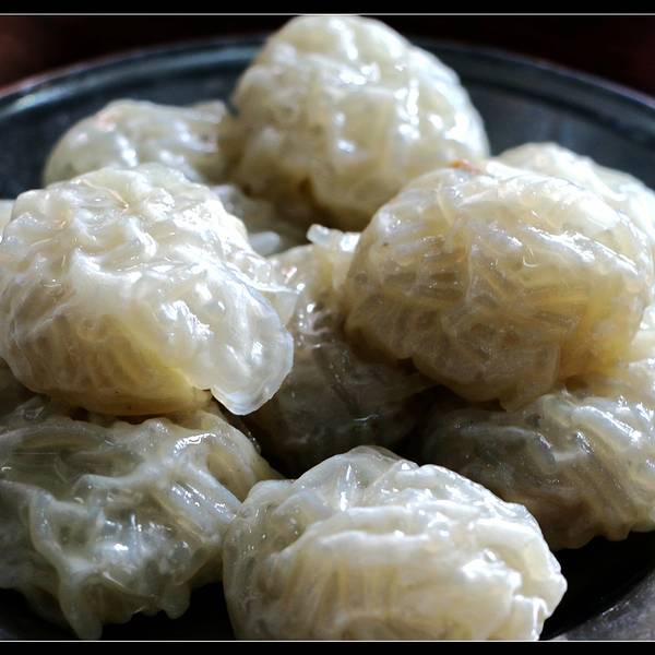 下面就是美食大放送时间啦!希望我鉴赏过的美食能勾起你的食欲。水晶烧麦。晶莹剔透。刚出炉的水晶烧麦热气腾腾,一个紧挨着一个,盛入碟中,小巧玲珑,令人垂涎欲滴。它的皮很薄,似吹弹可破,里面的馅料好像能通过透明的外皮看到。其实,制作水晶烧麦很有讲究,皮必须用面粉加木薯粉,这样面皮才会更加具有韧性,入锅蒸后更加的水晶透亮。
