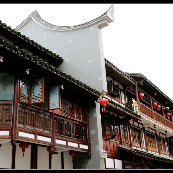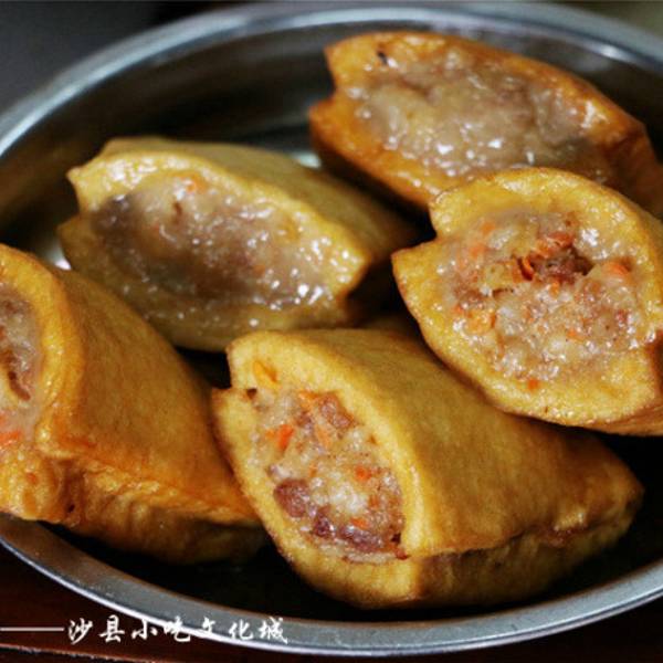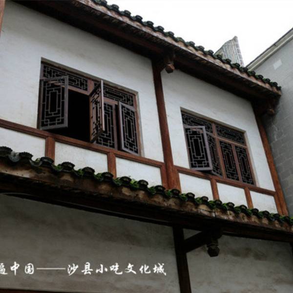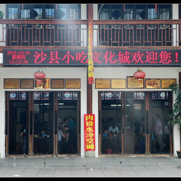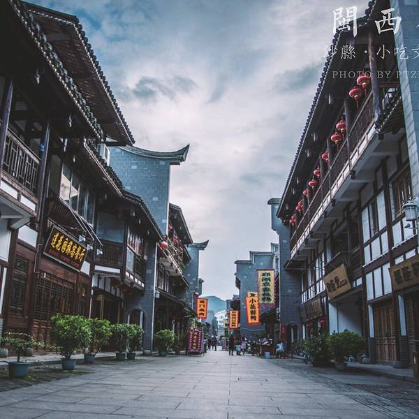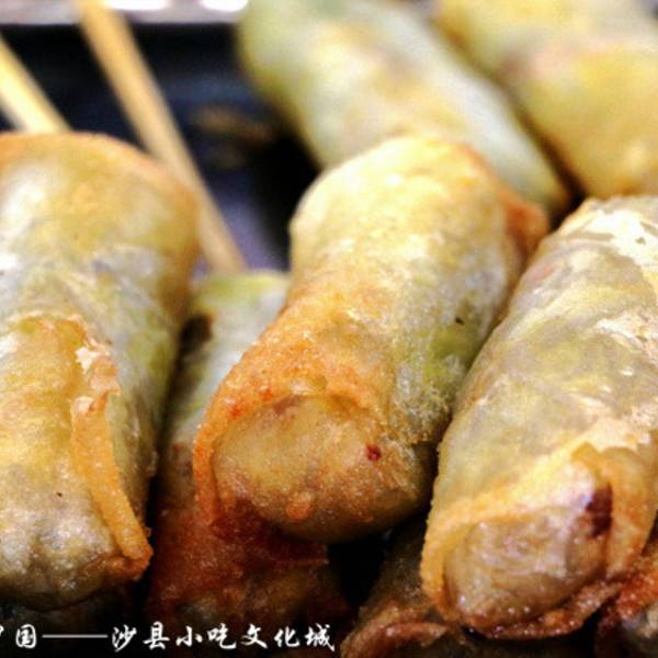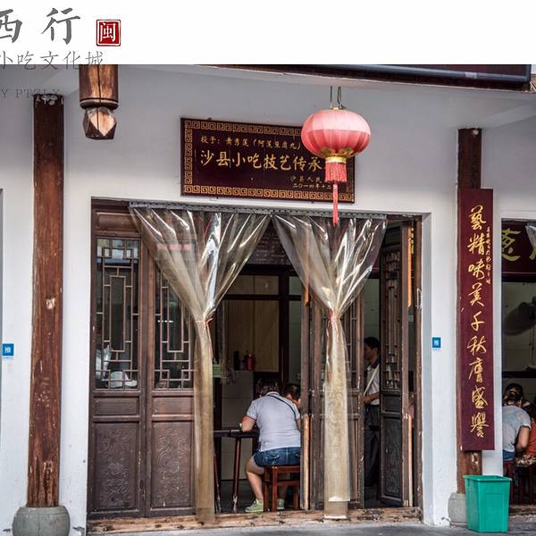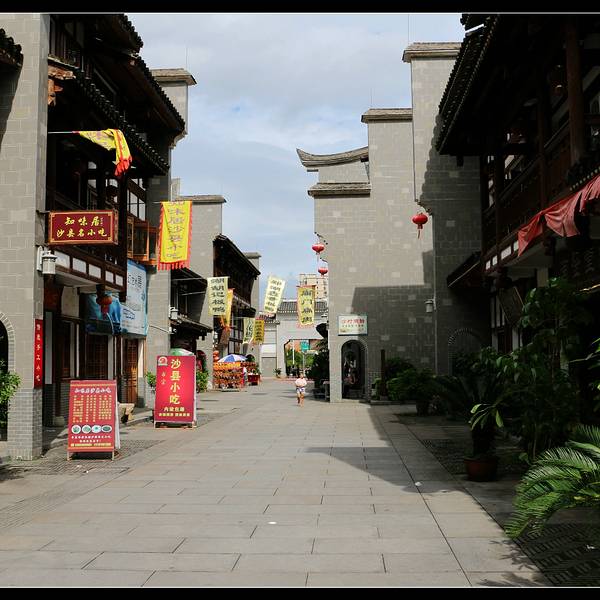 “水晶皮莹亮,银粉陷脂膏”,用筷子夹起一个烧麦放入口中,鲜香爽滑,味道鲜美。再蘸上沙县独有的豉油,吃起来更美味呢。这个外表色泽金黄的食物叫做——金银包。你一定猜不到这外皮是用藕粉做的吧?里面包裹的馅料很足,笋干丁、香菇丁、粉丝等都有,吃起来口感松软,味道不错。这东西看起来和饺子有点类似是不是?嘿嘿,它叫芋饺。它的面皮很厚实,可以滴水不露地,完好地隔绝煮芋饺的汤汁。听店里的阿姨说,当芋子和蕃薯粉揉合在一起时,便诞生了这一道美味。试了几个,发现入口既糯又柔,滑溜可口。细腻、软糯、嫩滑、浓稠、有粘性,这几个关键词大概就是我对它的印象吧。再放一张芋饺的图。这个既像饺子又像馄钝的东西。吃起来真是柔韧有余,有滋有味!沙县肉夹馍,和西安的肉夹馍还是有区别滴。它里面放的馅料是笋干,爱吃素食的小伙伴们可能更喜欢尝试。无肉不欢的朋友可能不倾向于选择它来尝。不过,对于我这样荤素皆吃的人,自然不能怠慢它,当然是要尝一尝咯。一箩筐的饼儿!葱肉饼!从那木炭烘炉里烤出来,一个个便成了烫手的美食,香、酥,脆、软兼而有之。炸春卷……外壳炸得金黄金黄的……飘香拌面来啦!其实这个沙县特有的拌面,周围的那一圈酱是秘制的花生酱,活着面吃,酱有点沙沙稠稠的感觉,酱香浓郁,拌面吃起来极好!食物偏凉,尝起来清香不腻、凉爽可口。据说沙县扁肉是由馄饨演变而来的。皮薄馅多是它最大的亮点,馅料是用猪的前后腿瘦肉做的,肉质脆嫩有味,嚼劲十足。汤水用猪骨熬制而成,闻起来清香扑鼻,喝起来味道鲜美。烫嘴豆腐真的烫嘴吗?不过,汤确实有点烫哦。豆腐直接蘸着酱油食用,嫩滑可口。汤水清爽,豆腐炖的很到位,完全饱满地吸收了汤汁的精髓。特制牛肉,切得很薄,撒上些许花生、辣椒、蒜儿,配以葱花香菜,满满的一盘,让人吃得拍手称赞!牛肉肉质有韧性,很有嚼头。米皮儿!色泽白皙的包心豆腐丸,吃起来口感嫩润。泥鳅粉干,你吃过吗?泥鳅,鲜美软嫩。粉干,细滑爽口。略带红色的汤水有些微辣。其实是酿制米酒残余的红酒糟。可能是汤料配了些切碎的红辣椒才有些辣的感觉。汤里还加有红凤菜和石菖蒲。总之,这道菜绝不能错过。色泽鲜红,闻之清香,吃起来滑嫩爽口,软糯香甜。吃饱喝足了,宜在小吃城里晃悠晃悠。好在小吃城面积也不算特别的大,在午后明媚的阳光下,慵懒地在石板路上踱步,好不惬意!路两旁都是古香古色的明清风格建筑,一幢幢灰黛的楼房,一间间古朴的店铺。门口树立的牌子,以及高高悬挂的飘动着的旗帜,都是每个小店宣传自身的工具。翘起的屋檐很有特点。屋檐上的瓦长满了绿色的青苔。窗户的雕纹很有古代的韵味。