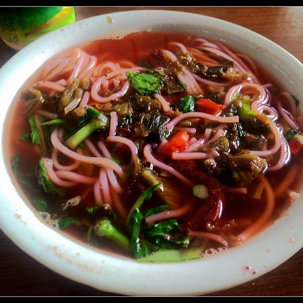 正宗扁肉超Q,鸭血汤看不出超辣噢😤。