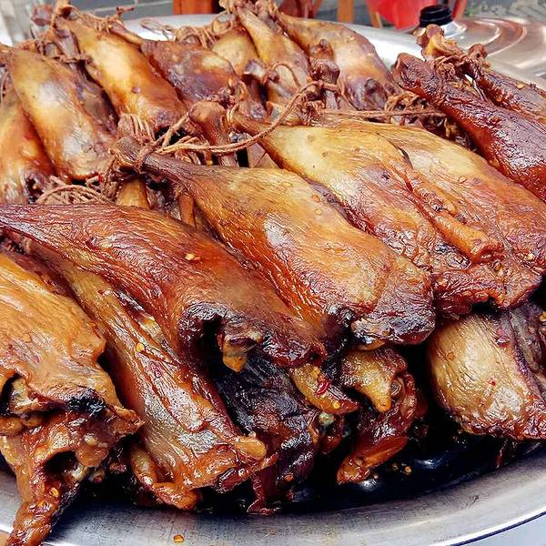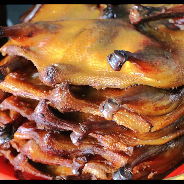 我觉得比较像在锤肉燕。板鸭深入沙县人民的日常生活中,随处可见这种板鸭架子,一溜摆在那里任人选购。