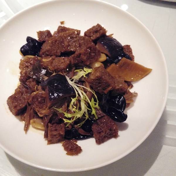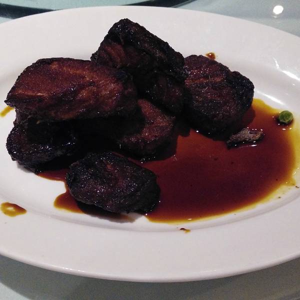 秘制烤雁脯 看菜名以为是大雁肉 具体是不是阿拉洋盘也不晓得 芥末无骨鸭掌 去骨的鸭掌吃起来很方便呢 用芥末色拉酱拌的 味道不错 招牌牛柳粒 牛肉粒很大块 咬下去有汁水 吃起来很有满足感 现划响油鳝丝 端上来...