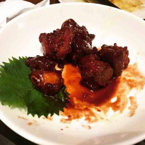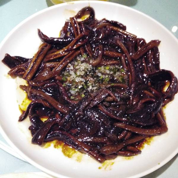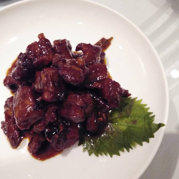 秘制烤雁脯 看菜名以为是大雁肉 具体是不是阿拉洋盘也不晓得 芥末无骨鸭掌 去骨的鸭掌吃起来很方便呢 用芥末色拉酱拌的 味道不错 招牌牛柳粒 牛肉粒很大块 咬下去有汁水 吃起来很有满足感 现划响油鳝丝 端上来的时候葱油还在滋滋作响 香味扑鼻自是不用说的了 鳝丝很嫩 好喜欢的呀~