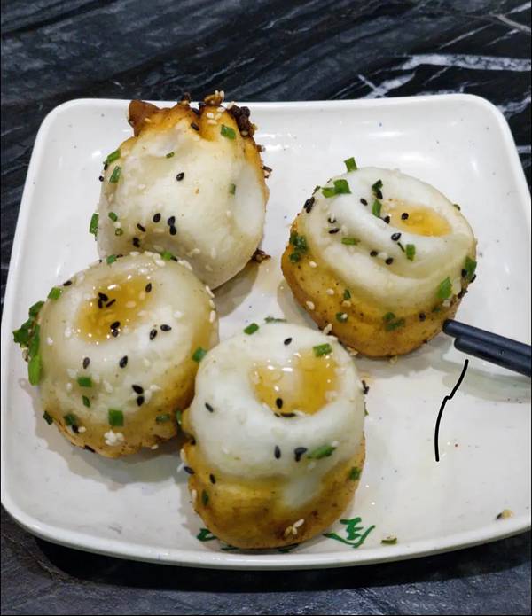 东泰祥的生煎包,外皮不是发酵面的那种,而是采用了特殊的制作工艺,使得皮面非常脆口,当你咬开一个小口,汤汁就会立刻流出,让人忍不住想要一口接一口地品尝。