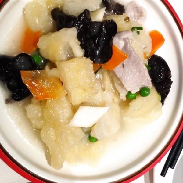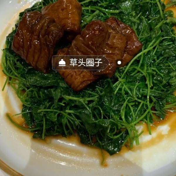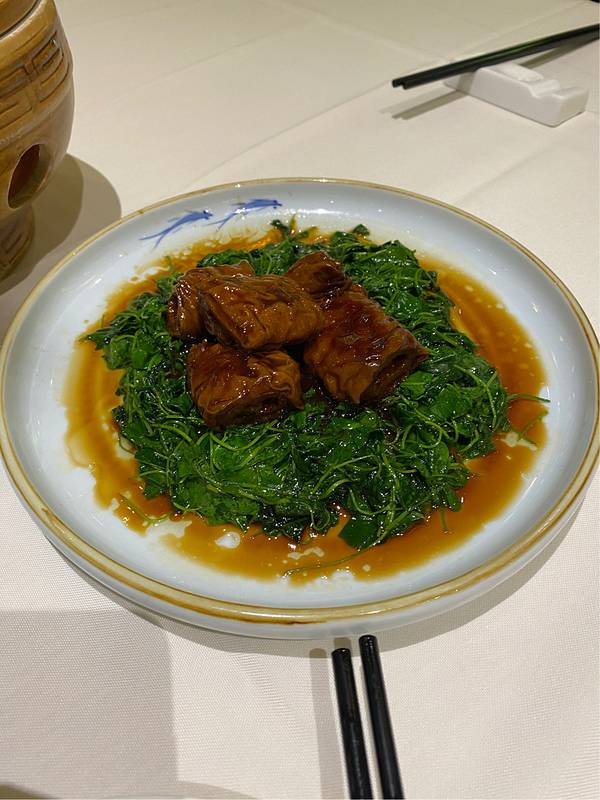 下巴划水,我觉得这道菜是今天全场最佳,外皮和里面的鱼肉软硬度正好,红烧的调味也恰到好处。体现了本帮菜的精髓。