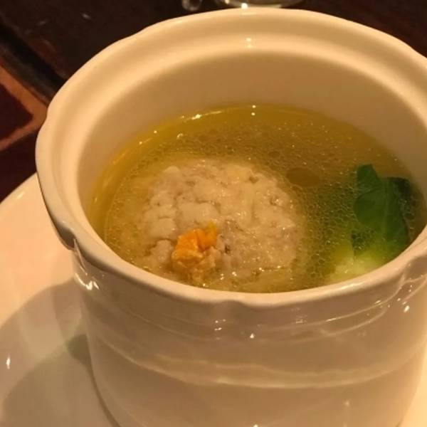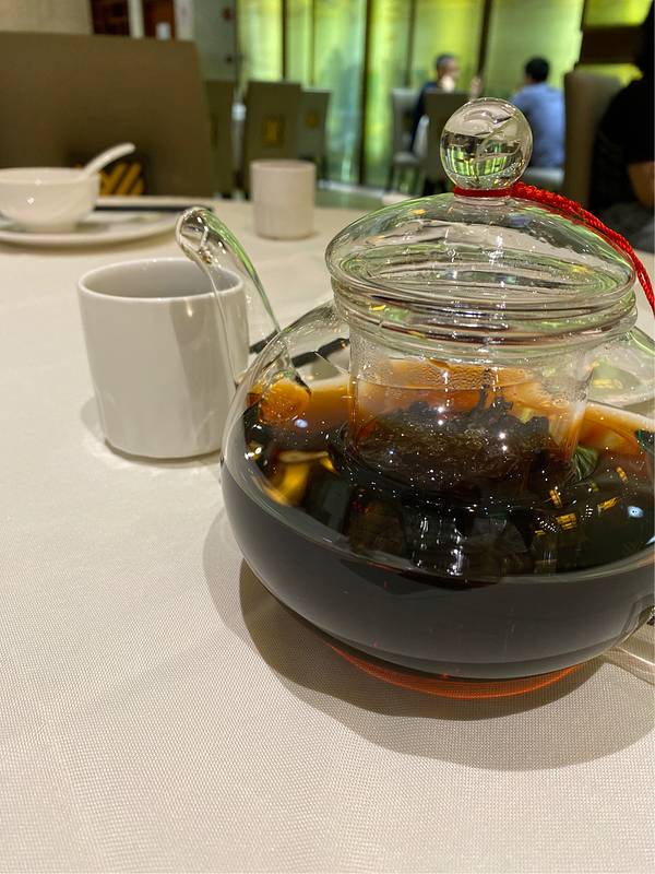 八宝辣酱98/份里面有银杏果,豆干,很大的肉粒,味道很浓厚,超级下饭园。 鸡汁干丝38/份超大一份,看起来很清淡,其实汤汁超级鲜美浓厚,里面还有挺多火腿丝的,豆皮切的碎碎的很入味,汤超级好喝凸。