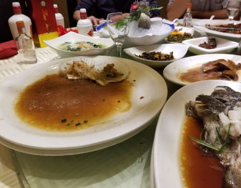 大学路玩好 晚饭在最保险的顺风解决 鉴于以前的经验 主要推荐了鲍汁凤爪还有蓬蒿菜 一如既往的美味 腌笃鲜用料还是比较十足的味道恰到好处 蜗牛配肯德基土豆泥也是不错的 酱爆榴莲和烤鸡没有以前做了好吃 青团的话有点硬黑松露也是大失所望 荠菜肉丝年糕量很足 根本吃不完 不过服务员点菜时少点了红烧鮰鱼 等发现时被告知要等一小时 只能取消 不过总体推荐吧