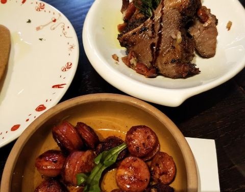 以前的披萨店,现在换成了西班牙餐厅,从周一到周五每天都有特惠活动,个人觉得周一最划算,全场小食半价,整本菜单一大半都是小食。 单点了一杯佐餐酒,还好有欢乐时光,可以续一杯,要不然95一杯实在贵了点。小...以前的披萨店,现在换成了西班牙餐厅,从周一到周五每天都有特惠活动,个人觉得周一最划算,全场小食半价,整本菜单一大半都是小食。 单点了一杯佐餐酒,还好有欢乐时光,可以续一杯,要不然95一杯实在贵了点。小吃的味道还不错,羊排和牛肉串都很好吃。