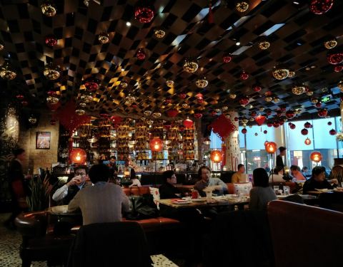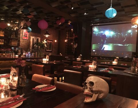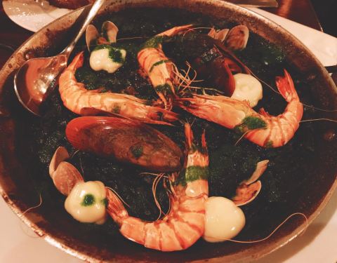 挑了这家店过万圣节,还好预订了座位,人气还很高。这家店有室内和室外,我还是偏向室内,一进门就感觉是家酒吧餐厅,万圣节的气氛还很浓,我们点了招牌羊架,很嫩很香。还有西班牙墨汁炒饭,味道不错,就是量太少。最棒的还是它家的酒,点了布朗石mojito是招牌,超级好喝。