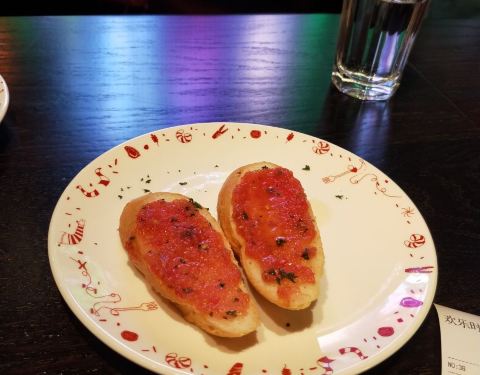 以前的披萨店,现在换成了西班牙餐厅,从周一到周五每天都有特惠活动,个人觉得周一最划算,全场小食半价,整本菜单一大半都是小食。 单点了一杯佐餐酒,还好有欢乐时光,可以续一杯,要不然95一杯实在贵了点。小...