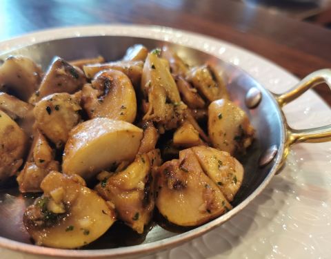 - ...尝上去肉很嫩,也没有骚味,好吃的,基本上每桌都会点的菜3 还有一份小蘑菇,然后自己又点了一杯酒