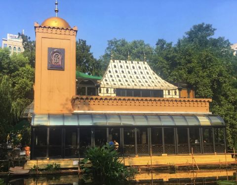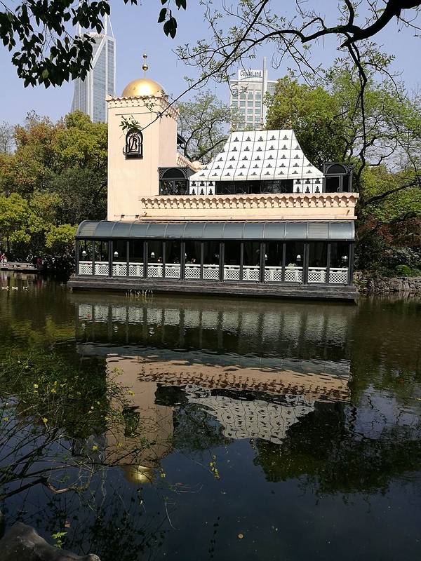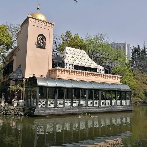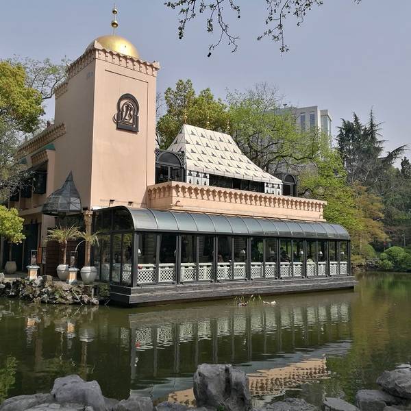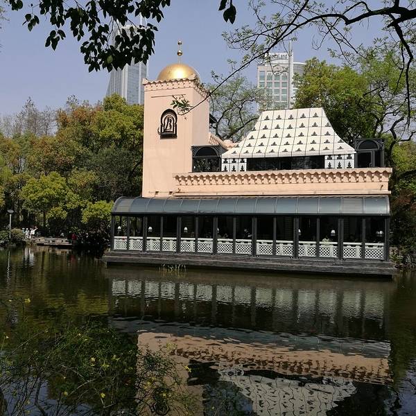 异域风情的上海人民公园人工湖畔芭芭露莎餐厅