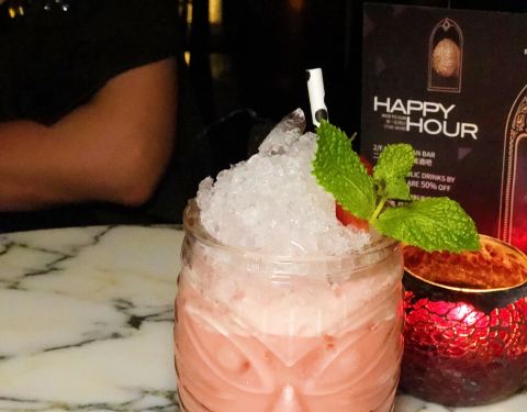 周末来芭芭露莎喝一杯。 中东风装修风格,仿佛置身在阿拉伯古老的国度里。昏暗的灯光下,墙壁上有光影投射。周围气氛热烈,氛围特别适合小酌一杯。 朋友点的草莓情缘和水果摩洛哥是无酒精鸡尾酒,样子美貌,粉粉...周末来芭芭露莎喝一杯。 中东风装修风格,仿佛置身在阿拉伯古老的国度里。昏暗的灯光下,墙壁上有光影投射。周围气氛热烈,氛围特别适合小酌一杯。 朋友点的草莓情缘和水果摩洛哥是无酒精鸡尾酒,样子美貌,粉粉嫩嫩很得女孩子欢心。 我点的紫雨朦胧淡紫色系加入薰衣草,看起来有一丝浪漫。淡淡酒精适合女孩子喝。