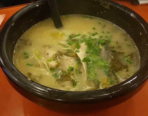 还行吧,看了网友评论去的。早上八点多,店里没什么人了,点了双菇面,熏鱼面,素鸡面,双菇的味道很像康师傅的香菇炖鸡面,熏鱼咸咸的不过蛮香的,素鸡就是两块豆腐,不过汤还是很好喝。配料的分量很足,面也就...